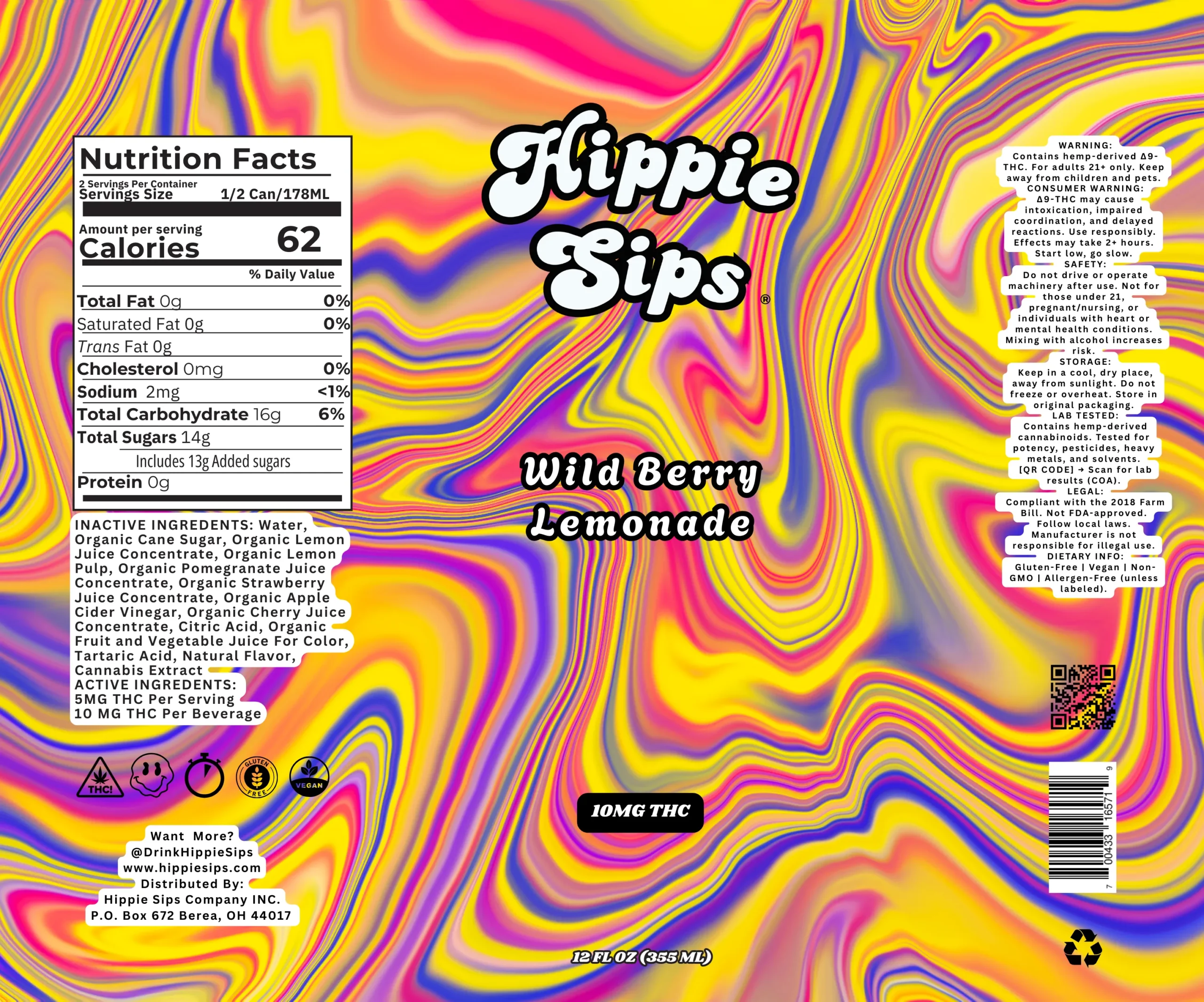 Sweet berries meet citrus zing. Wildberry Lemonade Hippie Sips blends the juicy taste of mixed wild berries with refreshing lemonade for a flavor that’s bold, tangy, and crave-worthy. With hemp-derived THC, it’s designed for those who want a flavorful alternative to alcohol and a social vibe that lasts.